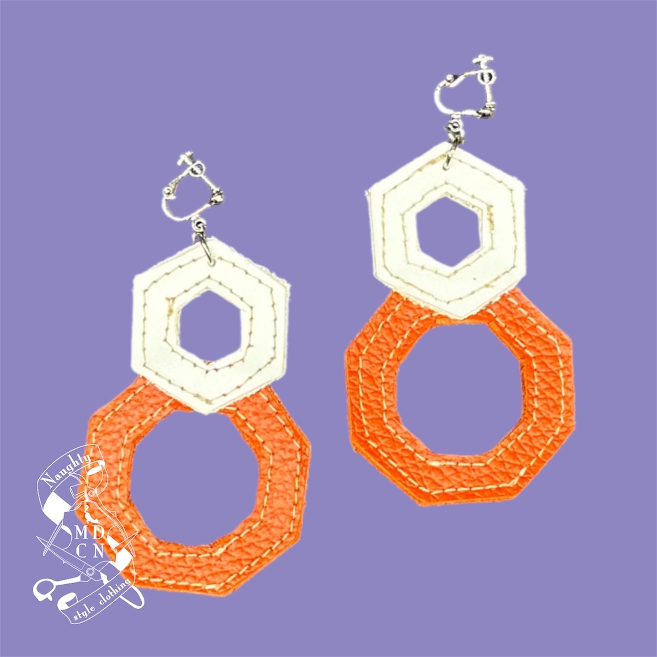 六角形のフォルムを重ねることで、耳元にモードな印象を与えてくれます。