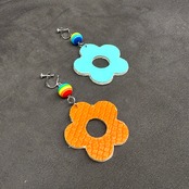 大きめのお花が揺れてカラフルなお色がちらりと見える可愛い定番お花形イヤリングです。